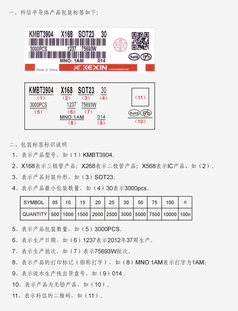 科信半導(dǎo)體產(chǎn)品包裝標(biāo)簽說明